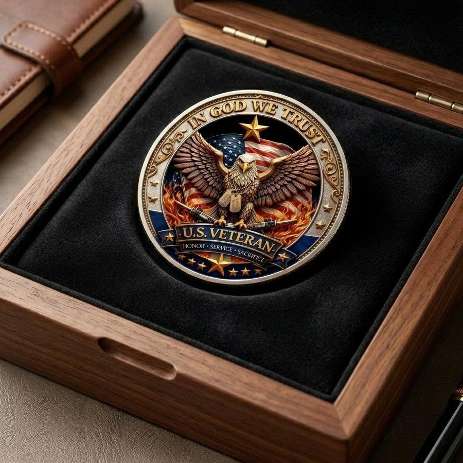 A powerful tribute coin designed to honor the courage, service, and sacrifice of U.S. Veterans, reminding every generation of the brave men and women who defended American freedom and protected our nationâs values.